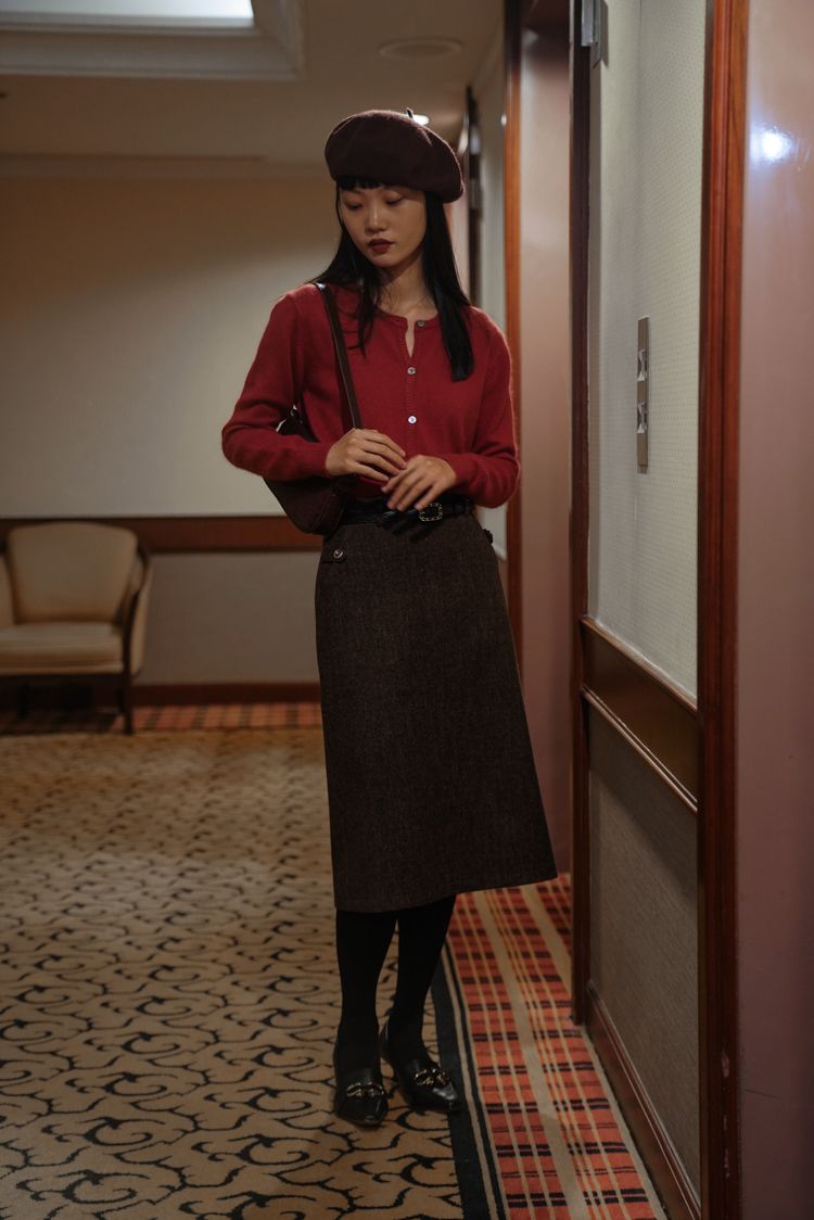 自古红蓝出CP,要是你今年刚好本命年,一件红色针织衫+蓝色半身裙真的再合适不过了!